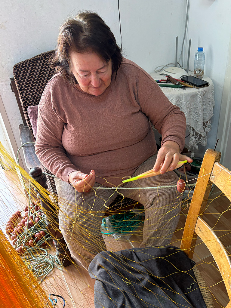 Eskiden balık avında kullandıkları ağları Neriman Abla adlı bir kadın örermiş. Zamanla bu zanaati kendilerinin öğrenmesi gerektiğini fark etmişler. Ağ donatmayı Ömer Usta’dan öğrenen Ergün Numan, önce kendi ağlarını örmeye başlamış; ardından bu bilgiyi eşine ve üç kızına da aktarmış. Eskiden birçok balıkçı ve ağ donatan varken, bugün bu işi yapan yalnızca bir iki kişinin kaldığını söylüyor.